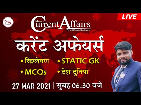 Daily Current Affairs 2021 | MCQ | By Sanjay Mahendras | 27 March 2021 | Master in Current Affairs View on YouTube